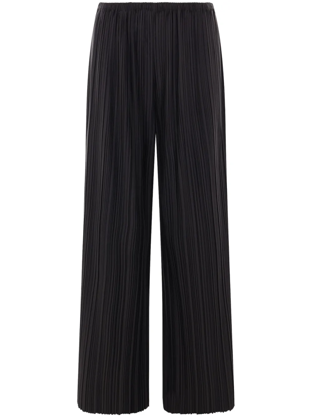 THE ROWらしい美脚パンツ。センタープレスと落ち感のある素材で、脚がまっすぐに見える名品。黒やチャコールグレーが人気。